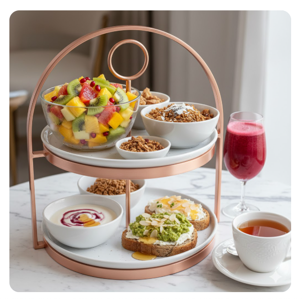 Des petits-déjeuners généreux, frais et élégants, servis toute la journée.